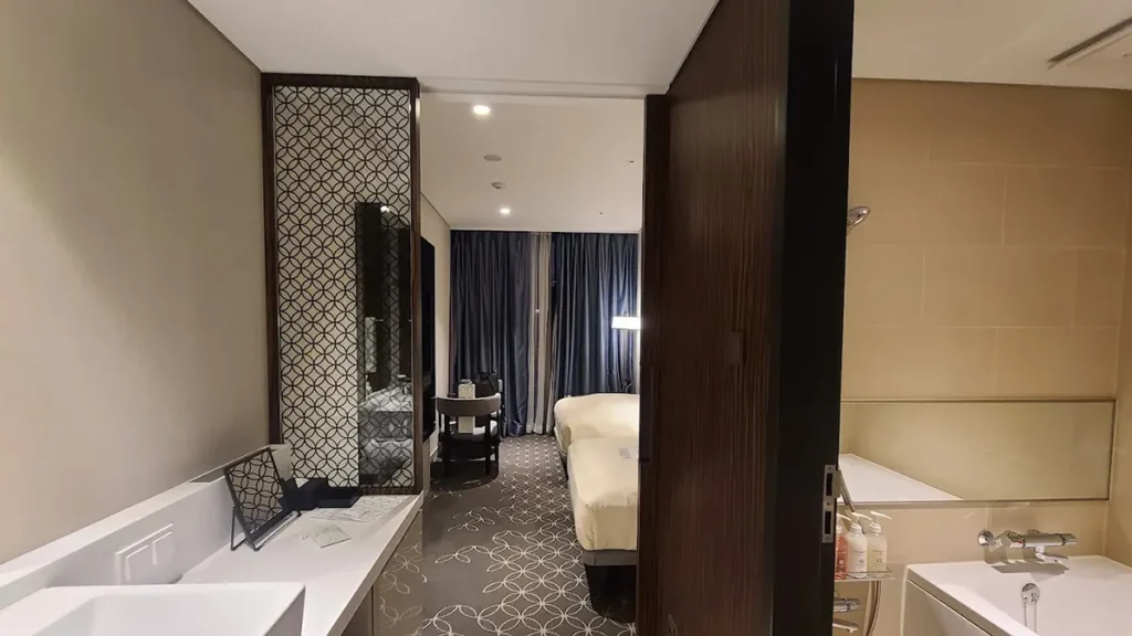 洗い場付きバスがあるのは本当にありがたい。韓国ホテルで湯船にゆっくり浸かれる安心感は大きい。