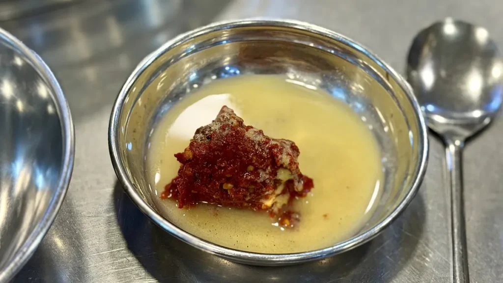 タレは、酢・醤油・タデギ・マスタードを自分で混ぜるスタイル。薬味が少なめだから、タデギの量で味がガラッと変わる。辛いの得意なら多め、控えめ派は少しずつが安全。私は欲張って入れすぎて途中から鼻水止まらなくなった。